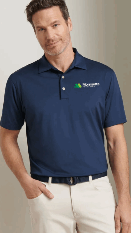 The Peter Millar Solid Performance Polo sells for $105 in retail stores around the country. we buy in bulk to gain a discount and then provide an additional 50% off discount to Morrisette Packaging employees.